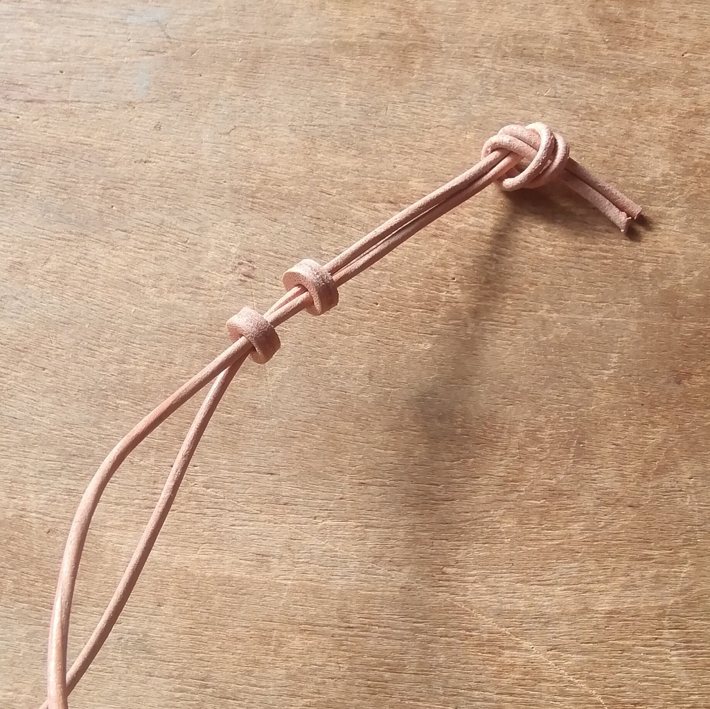 細い牛革紐の長さは約38cm、レザービーズで長さ調整が出来ます。