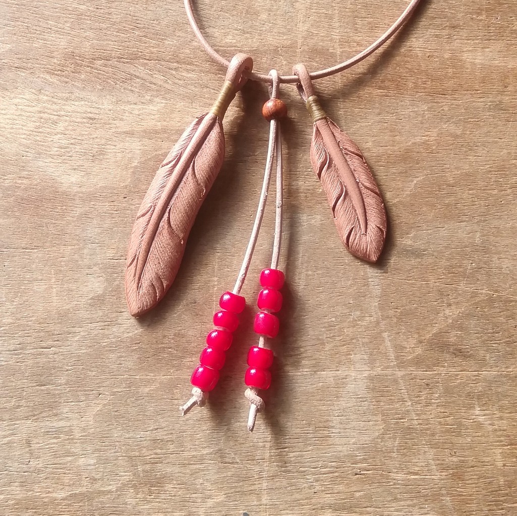 ネイティブアクセの定番モチーフ・イーグルフェザーをヌメ革で表現しました。
