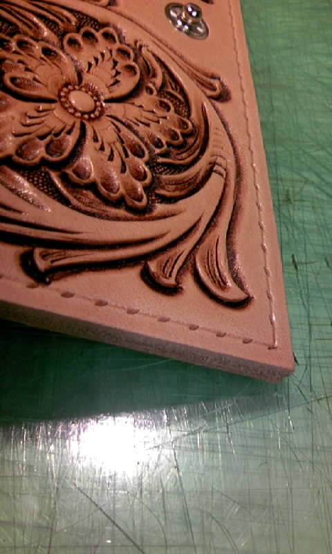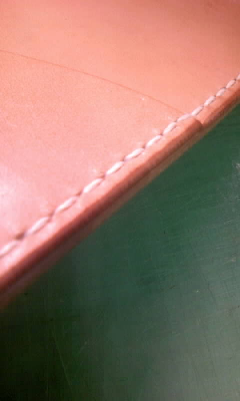 手縫いが全て終了しましたら最後に革の断面(これをコバと呼びます)を