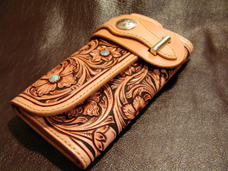 各パーツを牛革レースでアップリケレーシングでかがり仕立て完成です。